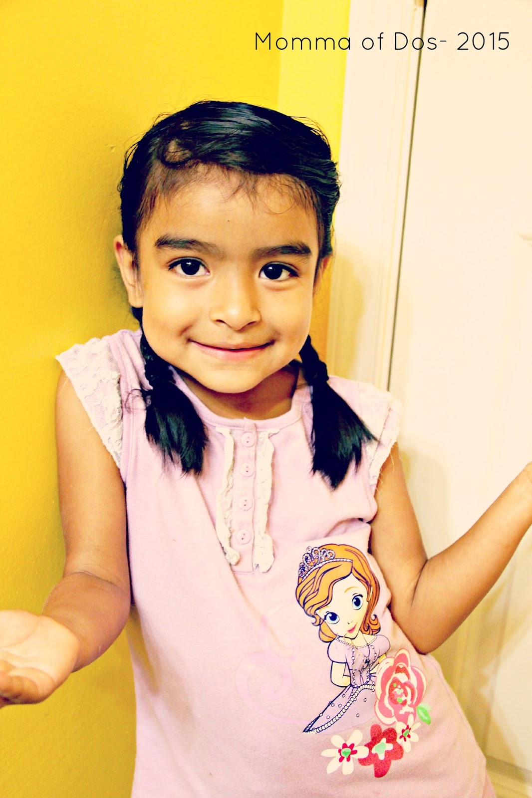 My little Cami, was so excited to start Pre-K. And, with this new school year she wanted to try new hair styles, that would help her express her own unique style. Which this toddler totally has! She wanted braids like her favorite cartoon princess. In 3 easy steps we accomplished a tear free, chic new look. This helped us get through our morning. Which makes not only for a beautiful and happy little girl but a happy {and stress-free} Momma as well.